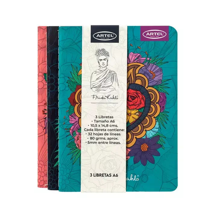 Este Set de Libretas Artel Diseño Frida Kahlo incluye 3 unidades con tapas ilustradas de alta calidad. Cada libreta tiene hojas resistentes para notas y bocetos, combinando funcionalidad y estilo artístico. Perfectas para estudiantes, artistas o amantes del diseño.